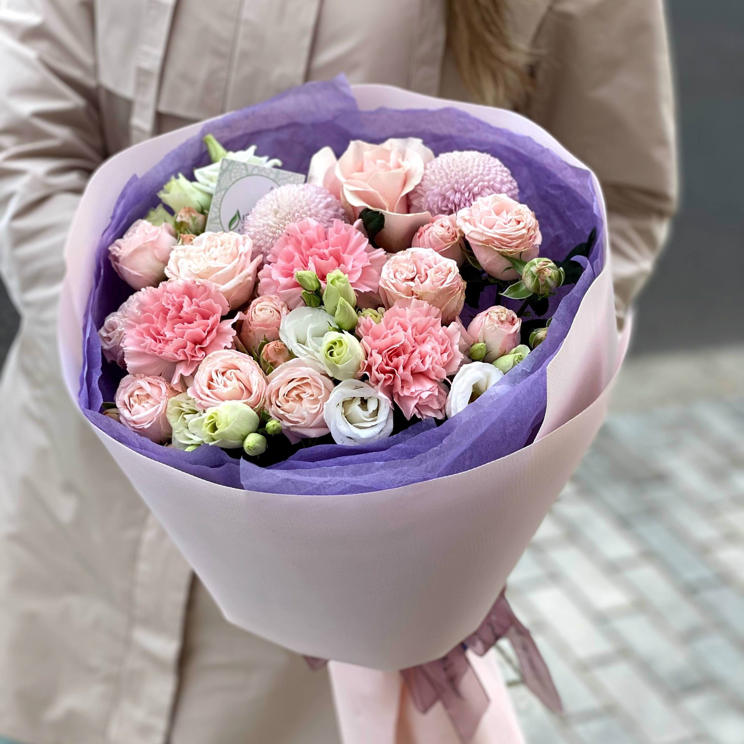 Букет "Дыхание весны" из хризантем, гвоздик и роз в Олонце